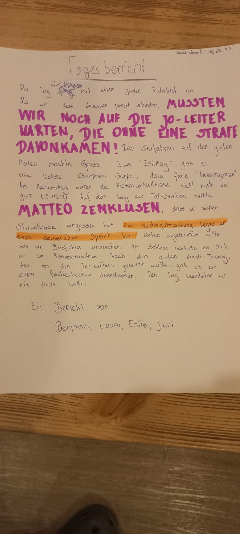 Skilager Tagebuch